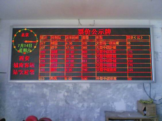 3.可使用紅,綠,黃三種顏色顯示屏上不同類型的信息,如票務(wù)信息,車次信息等等。
