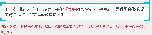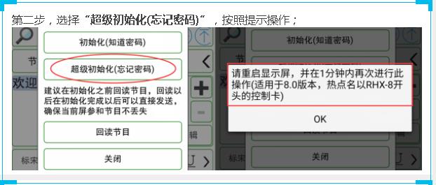 近來led顯示屏采用了瑞合信控制卡的都需要密碼,只有部改過顯示屏內(nèi)容的手機(jī)才能操作。如果找不到先前操作的人,只能讓控制卡恢復(fù)出廠設(shè)置,初始化控制卡密碼。然后再修改密碼。下面介紹操作的兩種方法: